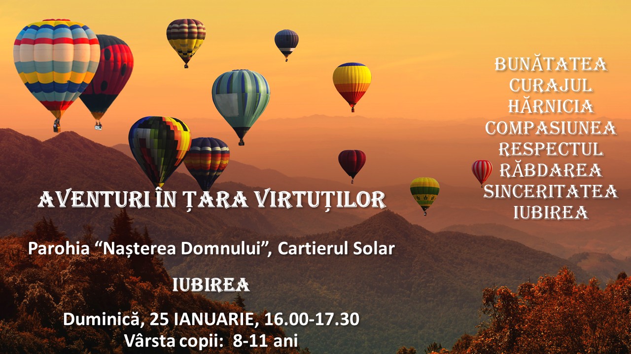 În Țara Virtuților, unde baloanele cu aer cald se ridică spre cer ca sufletele eliberate de poverile lumești, copiii parohiei „Nașterea Domnului” – Cartierul Solar vor porni duminică, 25 ianuarie, într-o aventură duhovnicească memorabilă.